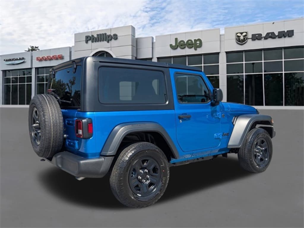 Equipped with Quick Order Package 22B Sport, 110 MPH Vehicle Max Speed Calibration, 3.45 Overall Top Gear Ratio, 4-Wheel Disc Brakes, 8 Speakers, ABS brakes, Air Conditioning, AM/FM radio: SiriusXM, Apple CarPlay/Android Auto, Aux Battery, Black 3-Piece Hard Top, Brake assist, Cloth Low-Back Bucket Seats, Compass, Deep Tint Sunscreen Windows, Delay-off headlights, Driver door bin, Driver vanity mirror, Dual front impact airbags, Dual front side impact airbags, Electronic Stability Control, Freedom Panel Storage Bag, Front anti-roll bar, Front Bucket Seats, Front Center Armrest w/Storage, Front fog lights, Front reading lights, Illuminated entry, Integrated roll-over protection, Jeep Trail Rated Kit, Low tire pressure warning, MOPAR All-Weather Floor Mats, Non-Lock Fuel Cap w/o Discriminator, Normal Duty Suspension, Occupant sensing airbag, Outside temperature display, Overhead airbag, Panic alarm, ParkView Rear Back-Up Camera, Passenger door bin, Passenger vanity mirror, Power steering, Power windows, Radio data system, Radio: Uconnect 5 w/12.3" Display, Rear anti-roll bar, Rear reading lights, Rear Window Defroster, Rear Window Wiper/Washer, Remote keyless entry, Speed control, Steering wheel mounted audio controls, Stop-Start Dual Battery System, Tachometer, Telescoping steering wheel, Tilt steering wheel, Traction control, Trip computer, Variably intermittent wipers, and Wheels: 17" x 7.5" Black Steel Styled. Price includes: $2000 - 2025 National Retail Bonus Cash . Exp. 11/03/2025