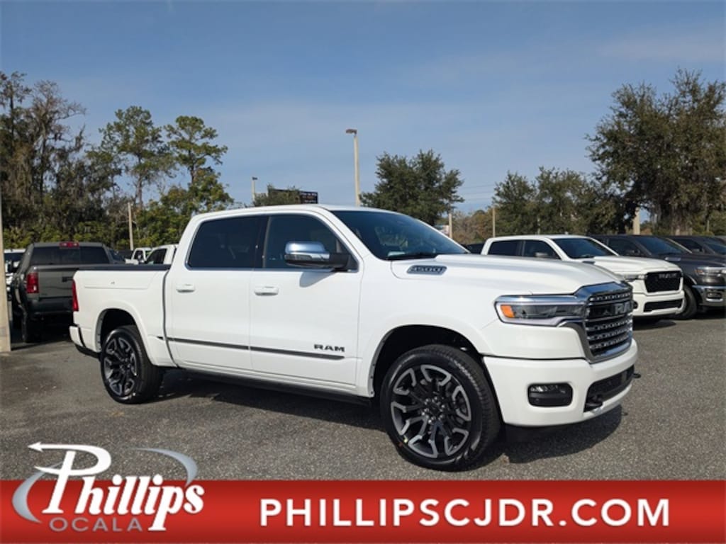 Equipped with Body Color Bumper Group (Body Color Front Bumper and Body Color Rear Bumper with Step Pads), Limited Level An Equipment Group (12-Way/1-Way Trailer Connector, 14.4" Touchscreen Display, 240 Amp Alternator, 4G LTE Wi-Fi Hot Spot, Apple CarPlay, Connected Travel and Traffic Services, Connectivity - US/Canada, Disassociated Touchscreen Display, Drowsy Driver Detection, Evasive Steer Assist, Exterior 115V AC Outlet, Global Telematics Box Module, Google Android Auto, GPS Antenna Input, GPS Navigation, Hands-Free Active Driving Assist System, HD Radio, Heads-Up Display, Integrated Center Stack Radio, Integrated Voice Command with Bluetooth, Intersection Collision Assist System, LED CHMSL Lamp, Radio: Uconnect 5 Nav with 14.4" Display, RamBox Cargo Management System, SiriusXM Radio Service, SiriusXM with 360L, Smartphone as a Key Capable, Surround View Camera System, Traffic Sign Recognition, Tri-Fold Tonneau Cover, and USB Host Flip), Quick Order Package 22M Limited, 19 Speakers, 3.92 Rear Axle Ratio, 4-Wheel Disc Brakes, ABS brakes, Active Noise Control System, Adjustable pedals, Air Conditioning, Alloy wheels, AM/FM radio, Apple CarPlay/Android Auto, Audio memory, Auto High-beam Headlights, Auto Power-Folding Mirrors, Auto-dimming door mirrors, Auto-Dimming Exterior Driver Mirror, Auto-dimming Rear-View mirror, Auto-leveling suspension, Automatic temperature control, Bodyside moldings, Brake assist, Bumpers: chrome, Chrome Exterior Mirrors, Compass, Convex Wide-Angle Exterior Mirror Insert, Delay-off headlights, Dome Dual LED Reading Lamp, Driver door bin, Driver vanity mirror, Dual front impact airbags, Dual front side impact airbags, Dual-Pane Panoramic Sunroof, Electronic Stability Control, Exterior Mirrors Courtesy Lamps, Exterior Mirrors with Heating Element, Exterior Mirrors with Memory, Exterior Mirrors with Supplemental Signals, Exterior Parking Camera Rear, Front anti-roll bar, Front Bucket Seats, Front Center Armrest w/Storage, Front dual zone A/C, Front fog lights, Front License Plate Bracket, Front reading lights, Front wheel independent suspension, Fully automatic headlights, Garage door transmitter, Genuine wood console insert, Genuine wood dashboard insert, Genuine wood door panel insert, Heated door mirrors, Heated front seats, Heated rear seats, Heated steering wheel, Illuminated entry, Leather steering wheel, LED Dome/Reading Lamp, Low tire pressure warning, Memory seat, Multi-Function Tailgate, Navigation System, Occupant sensing airbag, Outside temperature display, Overhead airbag, Overhead console, Panic alarm, Passenger door bin, Passenger vanity mirror, Pedal memory, Pirelli Brand Tires, Power door mirrors, Power driver seat, Power passenger seat, Power steering, Power windows, Premium Quilted Leather Bucket Seats, Radio data system, Radio: Uconnect 5 Navigation with 12.0" Display, Rain sensing wipers, RAM's Head Badge, Rear anti-roll bar, Rear reading lights, Rear seat center armrest, Rear step bumper, Rear window defroster, Remote keyless entry, Remote Tailgate Release, Security system, Speed control, Split folding rear seat, Steering wheel mounted audio controls, Tachometer, Telescoping steering wheel, Tilt steering wheel, Traction control, Trailer Brake Control, Trip computer, Turn signal indicator mirrors, Variably intermittent wipers, Ventilated front seats, Ventilated rear seats, Voltmeter, Wheels: 20" x 9" Premium Paint/Polished, and Wheels: 22" x 9" Premium Paint/Polished. Price includes: $3500 - 2026 National Retail Consumer Cash . Exp. 01/05/2026