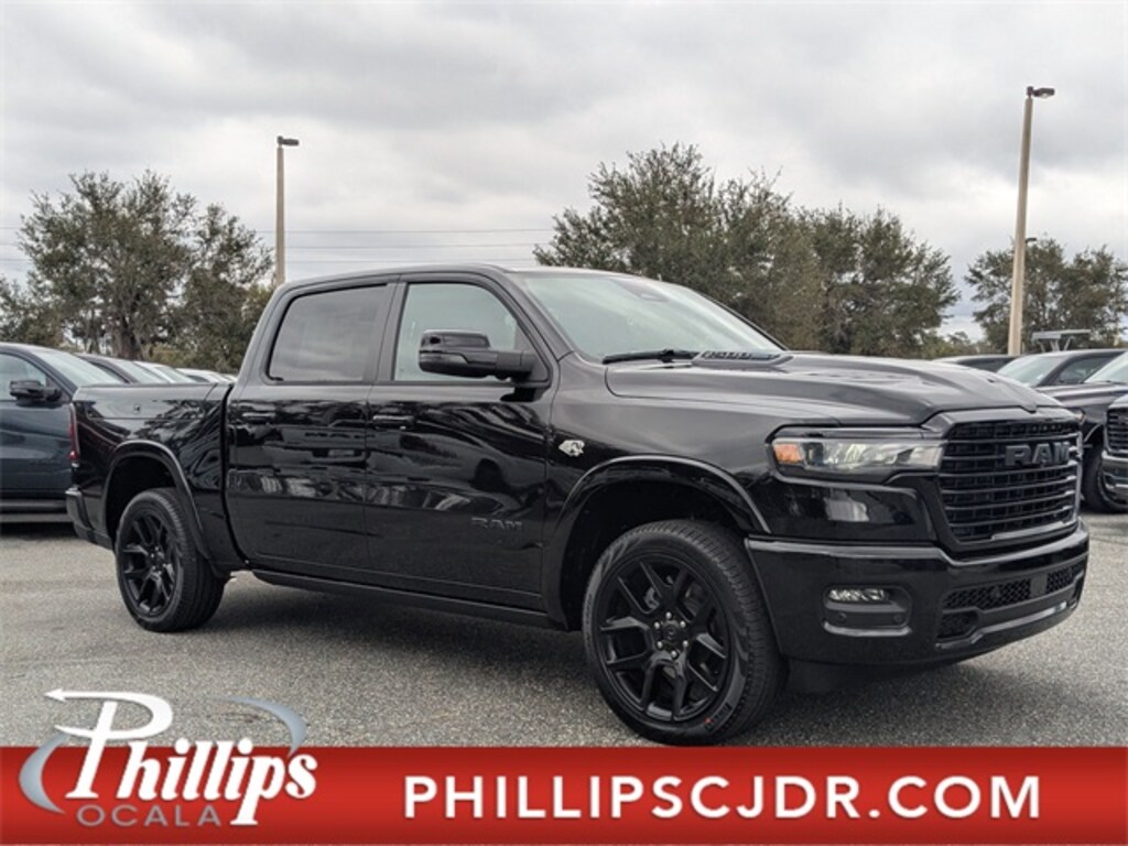 Equipped with Bed Utility Group (Exterior 115V AC Outlet, MOPAR 4 Adjustable Cargo Tie-Down Hooks, and MOPAR Spray in Bedliner), Laramie Level 2 Equipment Group (14.4" Touchscreen Display, 4G LTE Wi-Fi Hot Spot, Cluster 12" TFT Color Display, Connected Travel and Traffic Services, Connectivity - US/Canada, Front Passenger Interactive Display, GPS Navigation, Harman/Kardon 19 Speaker Premium Sound, Integrated Center Stack Radio, Integrated Voice Command with Bluetooth, Power Tailgate, Radio: Uconnect 5 Nav with 14.4" Display, Rain Sensitive Windshield Wipers, SiriusXM Radio Service, SiriusXM with 360L, and USB Host Flip), Night Edition (Accent Color Door Handles, Accent Color Premium Power Mirrors, Accent Color Tailgate Handle, Anti-Spin Differential Rear Axle, Auto Power-Folding Mirrors, Auto-Dimming Exterior Driver Mirror, Black Exterior Truck Badging, Black Headlamp Bezels, Black Interior Accents, Black Painted Exterior Mirrors Caps, Black Tail Lamp Bezels, Body Color Front Bumper, Body Color Rear Bumper with Step Pads, Convex Wide-Angle Exterior Mirror Insert, Dual Exhaust with Black Tips, Exterior Mirrors Approach Lamps, Exterior Mirrors Courtesy Lamps, Exterior Mirrors with Heating Element, Exterior Mirrors with Memory, Exterior Mirrors with Supplemental Signals, Grille Surround 3 Black Texture 2 Black, Pirelli Brand Tires, Proximity Approach/Departure Lamps, RAM Grille Badge - Black, Sport Performance Hood, and Wheels: 22" x 9" Forged Aluminum), Quick Order Package 27H Laramie, 10 Speakers, 4-Wheel Disc Brakes, ABS brakes, Active Noise Control System, Adjustable pedals, Air Conditioning, Alloy wheels, AM/FM radio: SiriusXM with 360L, Apple CarPlay/Android Auto, Audio memory, Auto High-beam Headlights, Auto-dimming door mirrors, Auto-dimming Rear-View mirror, Automatic temperature control, Brake assist, Bumpers: chrome, Chrome Exterior Mirrors, Compass, Delay-off headlights, Driver door bin, Driver vanity mirror, Dual front impact airbags, Dual front side impact airbags, Electronic Stability Control, Front anti-roll bar, Front Bucket Seats, Front Center Armrest w/Storage, Front dual zone A/C, Front fog lights, Front License Plate Bracket, Front reading lights, Front wheel independent suspension, Fully automatic headlights, Garage door transmitter, Heated door mirrors, Heated front seats, Heated rear seats, Heated steering wheel, Illuminated entry, Leather steering wheel, Leather Trimmed Bucket Seats, Low tire pressure warning, Memory seat, MOPAR Front and Rear Rubber Floor Mats, Navigation System, Occupant sensing airbag, Off-Road Information Pages, Outside temperature display, Overhead airbag, Overhead console, Panic alarm, ParkView Rear Back-Up Camera, Passenger door bin, Passenger vanity mirror, Pedal memory, Power Deployable Running Boards, Power door mirrors, Power driver seat, Power passenger seat, Power steering, Power windows, Radio data system, Radio: Uconnect 5 Navigation with 12.0" Display, RAM Grille Badge - Chrome, RamBox Cargo Management System, Rear anti-roll bar, Rear reading lights, Rear seat center armrest, Rear step bumper, Remote keyless entry, Security system, Speed control, Split folding rear seat, Steering wheel mounted audio controls, Tachometer, Telescoping steering wheel, Tilt steering wheel, Traction control, Trailer Brake Control, Trip computer, Turn signal indicator mirrors, Variably intermittent wipers, Ventilated front seats, Voltmeter, and Wheels: 20" x 9" Premium Paint/Polish. Price includes: $1000 - 2026 National Bonus Cash . Exp. 03/02/2026 $3500 - 2026 National Retail Consumer Cash . Exp. 03/02/2026