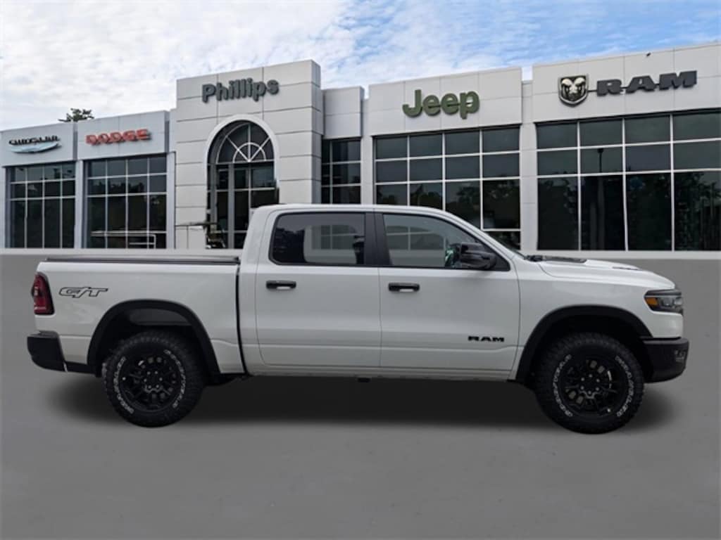 Equipped with Bed Utility Group (Exterior 115V AC Outlet, MOPAR 4 Adjustable Cargo Tie-Down Hooks, and MOPAR Spray In Bedliner), G/T Package (4 Way Front Headrests, Bucket Seats, Driver Seat Memory, Floor Console, Front Seat Back Map Pockets, G/T Decal, G/T Exhaust, GT Interior Theme, Heated Front Seats, Heated Second Row Seats, Heated Steering Wheel, Leather Wrapped Shift Knob, Leather-Wrapped Steering Wheel, Leather/Vinyl Bucket Seats, MOPAR Bright Pedal Kit, Performance Pages, Power 4-Way Driver Lumbar Adjust, Power 4-Way Passenger Lumbar Adjust, Power Adjust 8-Way Driver Seat, Power Adjust 8-Way Front Passenger Seat, Rear 60/40 Folding Split Recline Seat, Steering Wheel Mounted Shift Control, Under Seat Lighting, and Ventilated Front Seats), Quick Order Package 21W Rebel, Rebel Level 2 Equipment Group (115V Auxiliary Rear Power Outlet, 14.4" Touchscreen Display, 2-Door Passive Entry, Front Door Locks, 4G LTE Wi-Fi Hot Spot, Accent Color Door Handles, Accent Color Premium Power Mirrors, Accent Color Tailgate Handle, Apple CarPlay, Auto Power-Folding Mirrors, Auto-Dimming Exterior Driver Mirror, Black Painted Exterior Mirrors Caps, Connected Travel & Traffic Services, Connectivity - US/Canada, Convex Wide-Angle Exterior Mirror Insert, Disassociated Touchscreen Display, Dual Wireless Charging Pad, Exterior Mirrors Approach Lamps, Exterior Mirrors Courtesy Lamps, Exterior Mirrors w/Heating Element, Exterior Mirrors w/Memory, Exterior Mirrors w/Supplemental Signals, Front Passenger Interactive Display, Global Telematics Box Module (TBM), Google Android Auto, GPS Antenna Input, GPS Navigation, harman/kardon 19 Speaker Premium Sound, HD Radio, Integrated Center Stack Radio, Integrated Voice Command w/Bluetooth, Media Hub w/2 Charge Only USBs, Off-Road Information Pages, Power 2-Way Passenger Lumbar Adjust, Power Adjustable Pedals w/Memory, Power Tailgate, Proximity Approach/Departure Lamps, Radio: Uconnect 5 Nav w/14.4" Display, Radio/Driver Seat/Mirrors/Pedals Memory, Rain Sensitive Windshield Wipers, Rear Window Defroster, Security Alarm, SiriusXM Radio Service, SiriusXM w/360L, Smartphone As A Key Capable, and USB Host Flip), 10 Speakers, 3.92 Rear Axle Ratio, 33 Gallon Fuel Tank, 4-Wheel Disc Brakes, ABS brakes, Air Conditioning, Alloy wheels, AM/FM radio: SiriusXM with 360L, Apple CarPlay/Android Auto, Auto High-beam Headlights, Auto-dimming Rear-View mirror, Automatic temperature control, Black Exterior Mirrors, Brake assist, Cloth/Vinyl Bucket Seats, Compass, Delay-off headlights, Dome Dual LED Reading Lamp, Driver door bin, Driver vanity mirror, Dual front impact airbags, Dual front side impact airbags, Dual-Pane Panoramic Sunroof, Electronic Stability Control, Engine Block Heater, Front anti-roll bar, Front Bucket Seats, Front Center Armrest w/Storage, Front dual zone A/C, Front fog lights, Front reading lights, Front wheel independent suspension, Full Length Upgraded Floor Console, Fully automatic headlights, Garage door transmitter, Heated door mirrors, Heated front seats, Heated steering wheel, Illuminated entry, Leather steering wheel, Low tire pressure warning, Manual Folding Exterior Mirrors, Navigation System, Occupant sensing airbag, Outside temperature display, Overhead airbag, Overhead console, Panic alarm, ParkView Rear Back-Up Camera, Passenger door bin, Passenger vanity mirror, Power 2-Way Driver Lumbar Adjust, Power door mirrors, Power driver seat, Power steering, Power windows, Radio data system, Radio: Uconnect 5 Nav w/12.0" Display, Rear 60/40 Folding Seat, Rear anti-roll bar, Rear seat center armrest, Rear step bumper, Remote keyless entry, Speed control, Split folding rear seat, Steering wheel mounted audio controls, Tachometer, Telescoping steering wheel, Tilt steering wheel, Traction contro Price includes: $3500 - 2026 National Retail Consumer Cash . Exp. 1