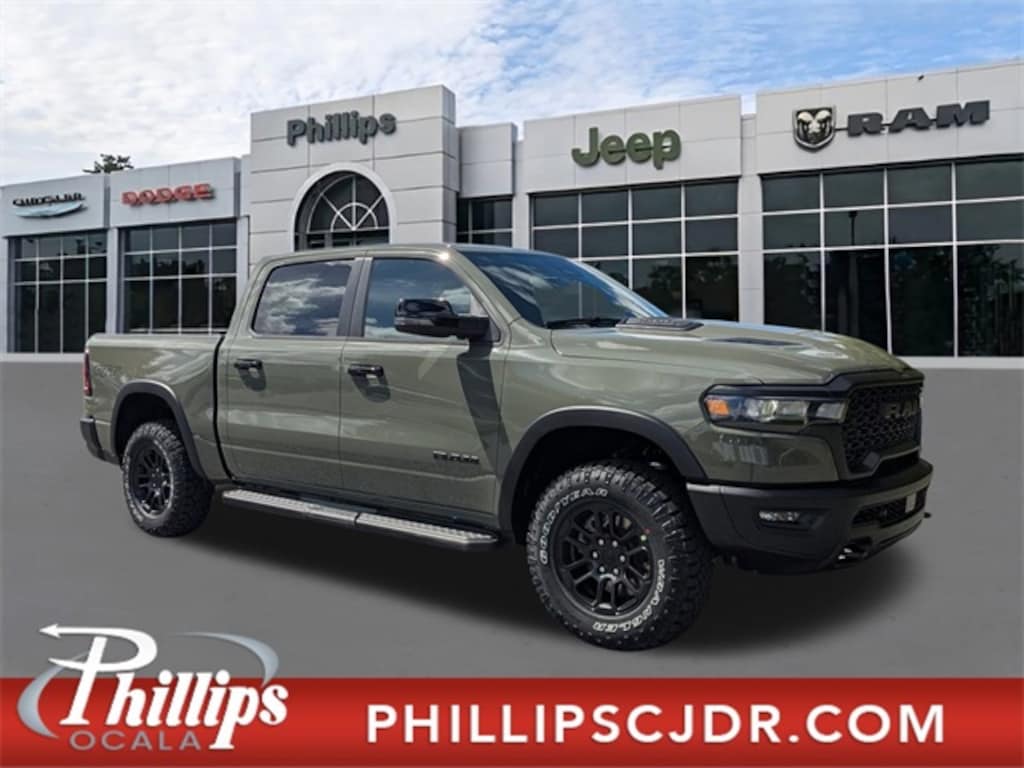 Equipped with Bed Utility Group (Exterior 115V AC Outlet, MOPAR 4 Adjustable Cargo Tie-Down Hooks, and MOPAR Spray In Bedliner), G/T Package (4 Way Front Headrests, Bucket Seats, Driver Seat Memory, Floor Console, Front Seat Back Map Pockets, G/T Decal, G/T Exhaust, GT Interior Theme, Heated Front Seats, Heated Second Row Seats, Heated Steering Wheel, Leather Wrapped Shift Knob, Leather-Wrapped Steering Wheel, Leather/Vinyl Bucket Seats, MOPAR Bright Pedal Kit, Performance Pages, Power 4-Way Driver Lumbar Adjust, Power 4-Way Passenger Lumbar Adjust, Power Adjust 8-Way Driver Seat, Power Adjust 8-Way Front Passenger Seat, Rear 60/40 Folding Split Recline Seat, Steering Wheel Mounted Shift Control, Under Seat Lighting, and Ventilated Front Seats), Quick Order Package 21W Rebel, Rebel Level 2 Equipment Group (115V Auxiliary Rear Power Outlet, 14.4" Touchscreen Display, 2-Door Passive Entry, Front Door Locks, 4G LTE Wi-Fi Hot Spot, Accent Color Door Handles, Accent Color Premium Power Mirrors, Accent Color Tailgate Handle, Apple CarPlay, Auto Power-Folding Mirrors, Auto-Dimming Exterior Driver Mirror, Black Painted Exterior Mirrors Caps, Connected Travel & Traffic Services, Connectivity - US/Canada, Convex Wide-Angle Exterior Mirror Insert, Disassociated Touchscreen Display, Dual Wireless Charging Pad, Exterior Mirrors Approach Lamps, Exterior Mirrors Courtesy Lamps, Exterior Mirrors w/Heating Element, Exterior Mirrors w/Memory, Exterior Mirrors w/Supplemental Signals, Front Passenger Interactive Display, Global Telematics Box Module (TBM), Google Android Auto, GPS Antenna Input, GPS Navigation, harman/kardon 19 Speaker Premium Sound, HD Radio, Integrated Center Stack Radio, Integrated Voice Command w/Bluetooth, Media Hub w/2 Charge Only USBs, Off-Road Information Pages, Power 2-Way Passenger Lumbar Adjust, Power Adjustable Pedals w/Memory, Power Tailgate, Proximity Approach/Departure Lamps, Radio: Uconnect 5 Nav w/14.4" Display, Radio/Driver Seat/Mirrors/Pedals Memory, Rain Sensitive Windshield Wipers, Rear Window Defroster, Security Alarm, SiriusXM Radio Service, SiriusXM w/360L, Smartphone As A Key Capable, and USB Host Flip), 10 Speakers, 3.92 Rear Axle Ratio, 33 Gallon Fuel Tank, 4-Corner Air Suspension, 4-Wheel Disc Brakes, ABS brakes, Air Conditioning, Alloy wheels, AM/FM radio: SiriusXM with 360L, Apple CarPlay/Android Auto, Auto High-beam Headlights, Auto-dimming Rear-View mirror, Automatic temperature control, Black Exterior Mirrors, Brake assist, Cloth/Vinyl Bucket Seats, Compass, Delay-off headlights, Dome Dual LED Reading Lamp, Driver door bin, Driver vanity mirror, Dual front impact airbags, Dual front side impact airbags, Dual-Pane Panoramic Sunroof, Electronic Stability Control, Front anti-roll bar, Front Bucket Seats, Front Center Armrest w/Storage, Front dual zone A/C, Front fog lights, Front License Plate Bracket, Front reading lights, Front wheel independent suspension, Full Length Upgraded Floor Console, Fully automatic headlights, Garage door transmitter, Heated door mirrors, Heated front seats, Heated steering wheel, Illuminated entry, Leather steering wheel, Low tire pressure warning, Manual Folding Exterior Mirrors, Mopar Black Tubular Side Steps, Navigation System, Occupant sensing airbag, Outside temperature display, Overhead airbag, Overhead console, Panic alarm, ParkView Rear Back-Up Camera, Passenger door bin, Passenger vanity mirror, Power 2-Way Driver Lumbar Adjust, Power door mirrors, Power driver seat, Power steering, Power windows, Radio data system, Radio: Uconnect 5 Nav w/12.0" Display, Rear 60/40 Folding Seat, Rear anti-roll bar, Rear seat center armrest, Rear step bumper, Remote keyless entry, Speed control, Split folding rear seat, Steering wheel mounted audio controls, Tachometer, Telescopin Price includes: $3500 - 2026 National Retail Consumer Cash . Exp. 1