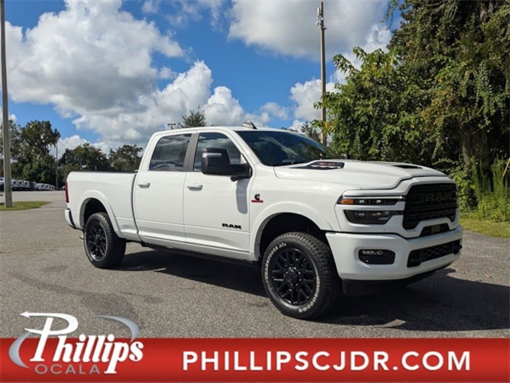 Equipped with 5th Wheel/Gooseneck Towing Prep Group (Pickup Box, Vendor Painted Cargo Box, and Vendor Painted Cargo Box Tracking), Limited Level 1 Equipment Group (Active Lane Management System, Adaptive Steering System, Anti-Spin Differential Rear Axle, CTR Stop Lamp w/Cargo View Camera, Digital Rearview Mirror, Drowsy Driver Detection, LED Bed Lighting, MOPAR Spray In Bedliner, Power Deployable Running Boards, Surround View Camera System, Traffic Sign Recognition, Trailer Reverse Guidance, and Trailer Tire Pressure Monitoring System), Night Edition (Black Exterior Truck Badging, Black Grille Limited, Black Interior Accents, Black Wheel Center Hub, Body Color Grille-Surround, Sport Performance Hood, and Wheels: 20" x 8.0" Night Edition Black Aluminum), Quick Order Package 24M Limited, 17 Speakers, 4-Wheel Disc Brakes, ABS brakes, Adjustable pedals, Air Conditioning, Alloy wheels, AM/FM radio: SiriusXM with 360L, Apple CarPlay/Android Auto, Audio memory, Auto High-beam Headlights, Auto Level Rear Air Suspension, Auto-dimming door mirrors, Auto-dimming Rear-View mirror, Automatic temperature control, Bodyside moldings, Brake assist, Bumpers: body-color, Compass, Delay-off headlights, Driver door bin, Driver vanity mirror, Dual front impact airbags, Dual front side impact airbags, Electronic Stability Control, Front anti-roll bar, Front Bucket Seats, Front Center Armrest w/Storage, Front dual zone A/C, Front fog lights, Front reading lights, Front Seat Back Map Pockets, Fully automatic headlights, Garage door transmitter, Genuine wood console insert, Genuine wood dashboard insert, Genuine wood door panel insert, harman/kardon® Speakers, Heated door mirrors, Heated front seats, Heated rear seats, Heated steering wheel, Illuminated entry, Leather steering wheel, Low tire pressure warning, Memory seat, Navigation System, Occupant sensing airbag, Outside temperature display, Overhead airbag, Overhead console, Panic alarm, ParkView Rear Back-Up Camera, Passenger door bin, Passenger vanity mirror, Pedal memory, Power door mirrors, Power driver seat, Power passenger seat, Power steering, Power Sunroof, Power windows, Radio data system, Radio: Uconnect 5 Nav w/14.4" Display, Rain sensing wipers, Rear anti-roll bar, Rear reading lights, Rear seat center armrest, Rear step bumper, Rear window defroster, Remote keyless entry, Security system, Speed control, Split folding rear seat, Steering wheel mounted audio controls, Tachometer, Tilt steering wheel, Traction control, Trip computer, Turn signal indicator mirrors, Ultra Premium Leather Seats, Variably intermittent wipers, Ventilated Front Seats, Ventilated front seats, Voltmeter, and Wheels: 20" x 8.0" Diam Cut Alum w/Blk Pt Pock. Price includes: $1000 - 2026 National Bonus Cash . Exp. 11/03/2025