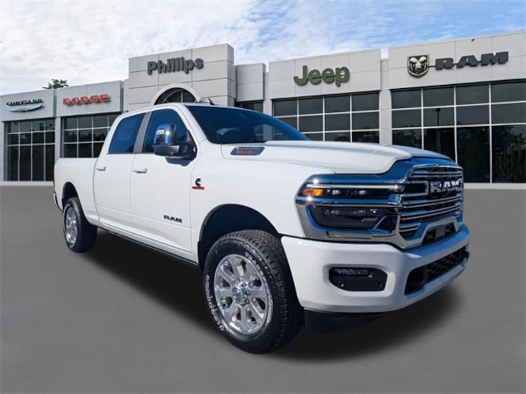 Equipped with Bed Convenience Group (LED Bed Lighting and MOPAR Spray in Bedliner), Laramie Level 2 Equipment Group (#1 Seat Foam Cushion, 115V Auxiliary Rear Power Outlet, 14.4" Touchscreen Display, 17 Speaker Harman/Kardon Premium Sound, 2 Way Rear Headrest Seat, 2nd Row in Floor Storage Bins, 4 Way Front Headrests, 4G LTE Wi-Fi Hot Spot, Alexa Built-in, Apple CarPlay, Auto Adjust in Reverse Exterior Mirrors, Auto Dimming Exterior Passenger Mirror, Auto High Beam Headlamp Control, Auto Power-Folding Mirrors, Auto-Dimming Exterior Mirrors, Bucket Seats, Chrome Exterior Mirrors, Connected Travel and Traffic Services, Connectivity - US/Canada, Disassociated Touchscreen Display, Dual Wireless Charging Pad, Emergency Vehicle Alert System (EVAS), Exterior Mirrors Courtesy Lamps, Exterior Mirrors with Heating Element, Exterior Mirrors with Memory, Exterior Mirrors with Supplemental Signals, Foam Bottle Insert (door Trim Panel), Folding Flat Load Floor Storage, For Details Visit DriveUconnect.com, For More Info, Call 800-643-2112, Forward and Reverse Utility Lights, Front Seat Back Map Pockets, Full Length Upgraded Floor Console, Global Telematics Box Module, Google Android Auto, GPS Antenna Input, GPS Navigation, HD Radio, Heated Front Seats, Heated Steering Wheel, High Back Seats, Integrated Voice Command with Bluetooth, Leather Trimmed Bucket Seats, Mirror Running Lights, Off-Road Information Pages, Power 2-Way Driver Lumbar Adjust, Power 2-Way Passenger Lumbar Adjust, Power Adjust 8-Way Driver Seat, Power Adjust 8-Way Front Passenger Seat, Power Adjust Mirrors, Power Adjustable Pedals with Memory, Power Heat Fold Memory Telescopic Mirrors, Power Telescoping Mirrors, Power-Adjustable Convex Aux Mirrors, Radio: Uconnect 5 Nav with 14.4" Display, Radio/Driver Seat/Mirrors/Pedals Memory, Rain Sensitive Windshield Wipers, Rear 60/40 Folding Seat, Remote Tailgate Release, Selectable Tire Fill Alert, SiriusXM Radio Service, SiriusXM with 360L, Trailer Tow Pages, and Ventilated Front Seats), Quick Order Package 24H Laramie, 10 Speakers, 20" x 8.0" Polished Aluminum Wheels, 4-Wheel Disc Brakes, 5th Wheel/Gooseneck Towing Prep Group, ABS brakes, Air Conditioning, Alloy wheels, AM/FM radio: SiriusXM with 360L, Apple CarPlay/Android Auto, Auto Level Rear Air Suspension, Auto-dimming Rear-View mirror, Automatic temperature control, Black Wheel Center Hub, Brake assist, Bumpers: body-color, Center Hub, Compass, Delay-off headlights, Driver door bin, Driver vanity mirror, Dual front impact airbags, Dual front side impact airbags, Electronic Stability Control, Front anti-roll bar, Front Center Armrest w/Storage, Front dual zone A/C, Front fog lights, Front License Plate Bracket, Front reading lights, Fully automatic headlights, Garage door transmitter, Heated door mirrors, Heated front seats, Heated steering wheel, Illuminated entry, Leather Trim 40/20/40 Bench Seat, Low tire pressure warning, MOPAR Front and Rear Rubber Floor Mats, Navigation System, Occupant sensing airbag, Outside temperature display, Overhead airbag, Overhead console, Panic alarm, ParkView Rear Back-Up Camera, Passenger door bin, Passenger vanity mirror, Power Deployable Running Boards, Power door mirrors, Power driver seat, Power passenger seat, Power steering, Power windows, Radio data system, Radio: Uconnect 5 Navigation with 12.0" Display, Rear reading lights, Rear seat center armrest, Rear step bumper, Rear window defroster, Remote keyless entry, Security system, Speed control, Split folding rear seat, Steering wheel mounted audio controls, Tachometer, Tilt steering wheel, Traction control, Trip computer, Turn signal indicator mirrors, Variably intermittent wipers, Voltmeter, and Wheels: 18" x 8.0" Diamond Cut Aluminum with Black Pt PocketS. Price includes: $1000 - 2026 National Bonus Cash . Exp. 03/02/2026