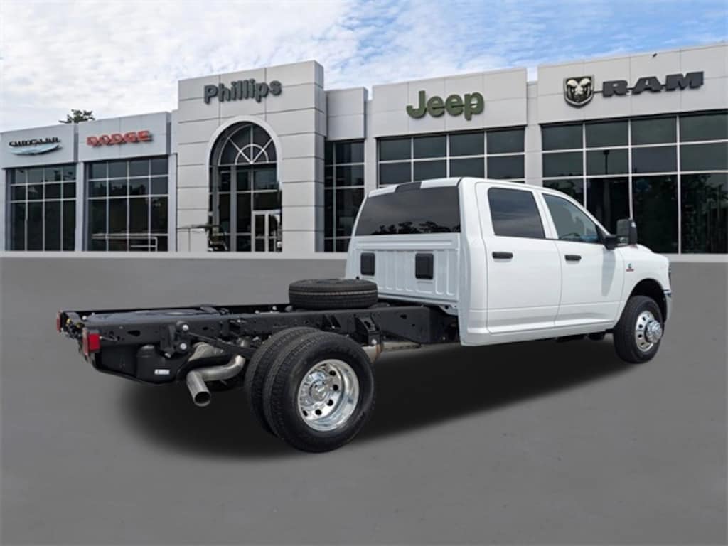 Equipped with Chrome Appearance Group (DISC) (Bright Front Bumper, Center Hub, Chrome Grille Surround, Matte Black Mesh Grille w/Chrome, and Wheels: 18" x 8.0" Polished Aluminum), Quick Order Package 25A Tradesman, Tradesman Level 1 Equipment Group (Black Exterior Mirrors, Black Power Heated Fold Telescope Mirrors, Exterior Mirrors Courtesy Lamps, Exterior Mirrors w/Heating Element, Exterior Mirrors w/Supplemental Signals, Manual Folding Exterior Mirrors, Manual Telescoping Mirrors, Mirror Running Lights, Power Adjust Mirrors, Power-Adjustable Convex Aux Mirrors, Rear Window Defroster, Trailer Brake Control, and Trailer Light Check), 11.50" Dual Wheels Rear Axle, 2 Way Rear Headrest Seat, 4-Wheel Disc Brakes, 40/20/40 Split Bench Seat, 4G LTE Wi-Fi Hot Spot, 52 & 22 Gallon Dual Fuel Tanks, 6 Speakers, 6000# Front Axle w/Hub Ext, ABS brakes, Air Conditioning, AM/FM radio: SiriusXM, Apple CarPlay, Apple CarPlay/Android Auto, Black Wheel Center Hub, Compass, Connectivity - US/Canada, Delay-off headlights, Driver door bin, Dual Alternators Rated at 480 Amps, Dual front impact airbags, Dual Rear Wheels, Electronic Stability Control, Emergency communication system: RAM Connect, For Details, Visit DriveUconnect.com, Front anti-roll bar, Front Armrest w/Cupholders, Front Center Armrest w/Storage, Front fog lights, Front License Plate Bracket, Front reading lights, Fully automatic headlights, Global Telematics Box Module (TBM), Google Android Auto, GPS Antenna Input, HD Vinyl 40/20/40 Split Bench Seat, Illuminated entry, Integrated Voice Command w/Bluetooth, Manual Adjust 4-Way Driver Seat, Manual Adjust 4-Way Front Passenger Seat, Nexen Brand Tires, Occupant sensing airbag, Outside temperature display, Overhead console, Panic alarm, Passenger door bin, Passenger vanity mirror, Power steering, Power windows, Radio data system, Radio: Uconnect 5 w/8.4" Display, Rear anti-roll bar, Rear Folding Seat, Remote keyless entry, Remote USB Port - Charge Only, Speed control, Storage Tray, Tachometer, Temperature & Compass Gauge, Tilt steering wheel, Traction control, Variably intermittent wipers, Voltmeter, Wheels: 17" x 6.0" Polished Aluminum, and Wheels: 18" x 8.0" Steel PainteD.